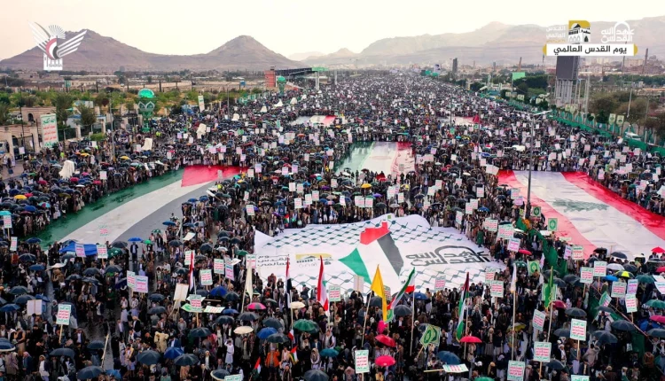 تحت زخات المطر.. مسيرة كُبرى بالعاصمة صنعاء إحياءً ليوم القدس العالمي