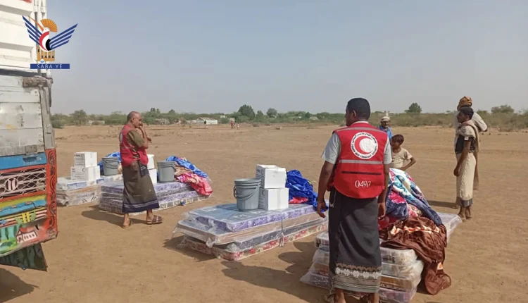 الهلال الأحمر يوزع مساعدات لـ 36 أسرة في الحديدة تضررت من السيول والحرائق