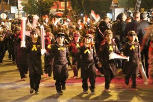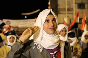 وقام شباب وفتيات الكشافة والمرشدات بالمرور من أمام المنصة في عرض شبابي كشفي وإرشادي جسد فيه المشاركون أهداف الثورة اليمنية الستة ومبادئها العظيمة، وهتفوا بشعارات عبرت عن عظمة ومكانة المناسبة الوطنية في نفوس اليمنيين.