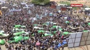 وبدأت فعاليات مراسم التشييع بمسيرة جماهيرية ردد فيها المشاركون هتافات منددة بالجريمة وداعية للثأر لدماء الشهداء، ورددوا هتافات منها “سنحاكمكم في الجبهات.. بسواعدنا والصرخات” و “ثأرا لدماء الأطفال.. سنريكم بأس الأبطال”، و” قولوا للأمريكيين: سنرد الصاع بصاعين”