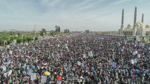 شّهد ميدان السبعين في العاصمة صنعاء ، مسيرات جماهيرية حاشدة بمناسبة مرور أربعة أعوام من الصمود في وجه العدوان السعودي ، نتاج الصمود الأسطوري للمقاتل اليمني، ومِن خلفه شعب لا يزال ثابتاً رغماً عن الجوع والموت والدمار.