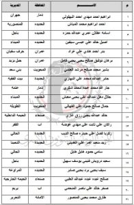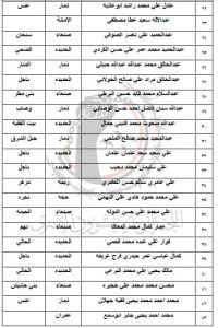فيما يلي كشوفات بأسماء الأسرى المحررين: