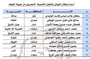 أعلنت اللجنة الوطنية لشؤون الأسرى اليوم، عن تحرير 10 من أسرى الجيش واللجان الشعبية بجبهة الجوف .