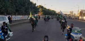 وطاف فرسان اليمن وهم يمتطون صهوات جيادهم شوارع العاصمة صنعاء قبيل ساعات من بدء الفعالية الكبرى لذكرى المولد النبوي الشريف وصولا إلى ميدان السبعين .