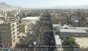 شهدت العاصمة صنعاء عصر اليوم الجمعة مسيرة جماهيرية كبرى في ساحة خط المطار، بمناسبة اليوم الوطني للصمود، وتدشينا للعام السابع من الصمود في وجه العدوان الأمريكي السعودي.