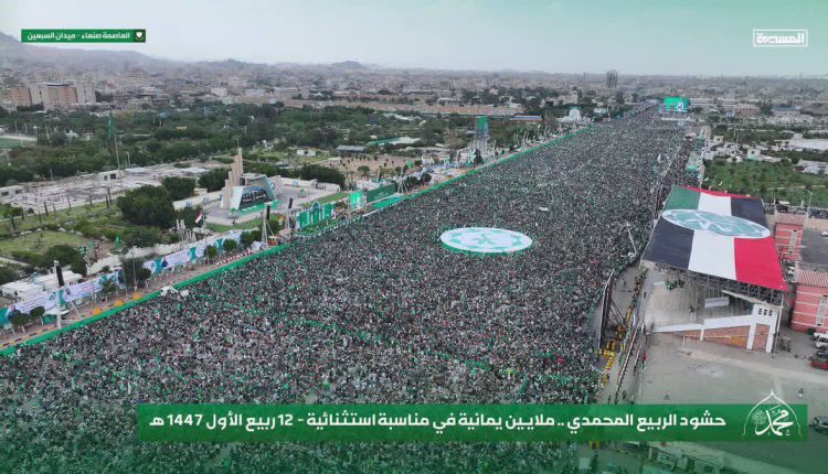 ووجه فخامة الرئيس تحية شكر وإجلال وعرفان للشعب اليمني العظيم على حضوره المهيب في إحياء ذكرى مولد الرسول الأعظم صلى الله عليه وآله وسلم في العاصمة صنعاء ومختلف المحافظات.